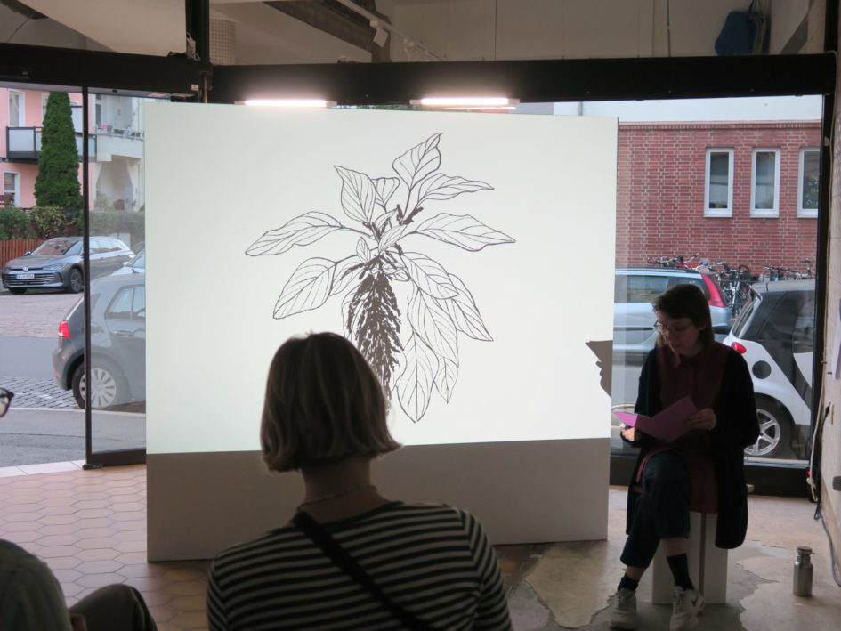 Julia Mensch (based in Berlin and Buenos Aires) explores the amaranth plant as a political actor in the conflict around soybean monoculture in South America. Glyphosate, a powerful herbicide, is used in combination with resistant seeds. Monocultures are established on clear cut rainforest lands, leading to catastrophic consequences for the climate, biodiversity, peasants and indigenous communities. Amaranth, also named kiwicha or yuyo colorado withstands the toxic treatment. Its resilience has gained symbolic power that inspired political resistance. Its seeds were preserved by indigenous peoples, despite the Spanish colonizers’ prohibition. Julia Mensch calls amaranth America’s revenge, relating to the scientist and environmental activist Andrés Carrasco. Through her artistic research approach using drawings, observation and interviews, the artist explores the perspective of the plant and its active role in both local and global contexts.